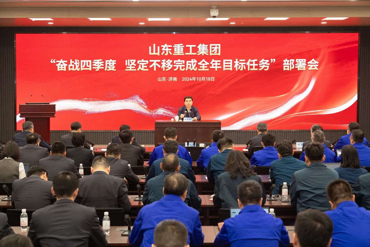 10月18日,山东重工集团召开“奋战四季度 坚定不移完成全年目标任务”部署会,深入学习贯彻党的二十届三中全会和9月26日中央政治局会议精神,全面落实省委、省政府决策部署和省国资委三季度经济运行分析会要求,总结集团前三季度经济运行情况,分析当前面临的内外部形势,谋划四季度工作安排,推动各项工作再加力、再突破、再提效,奋战四季度,坚定不移完成全年各项目标任务。党委书记、董事长满慎刚出席会议并讲话。党委副书记、总经理王志坚通报集团前三季度运营情况和四季度目标任务,并与权属企业主要负责人签订经营目标责任状。党委副书记、董事叶建军主持会议。